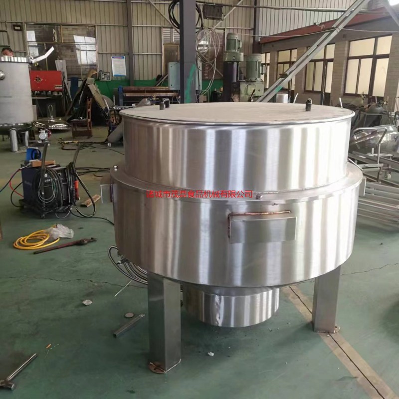 立式夾層鍋主要由鍋體和撐腳組成;鍋體是由內外球形鍋體組成的雙層結構形式,中間夾層通入蒸汽加熱。