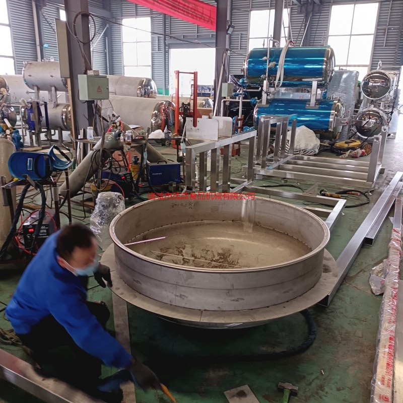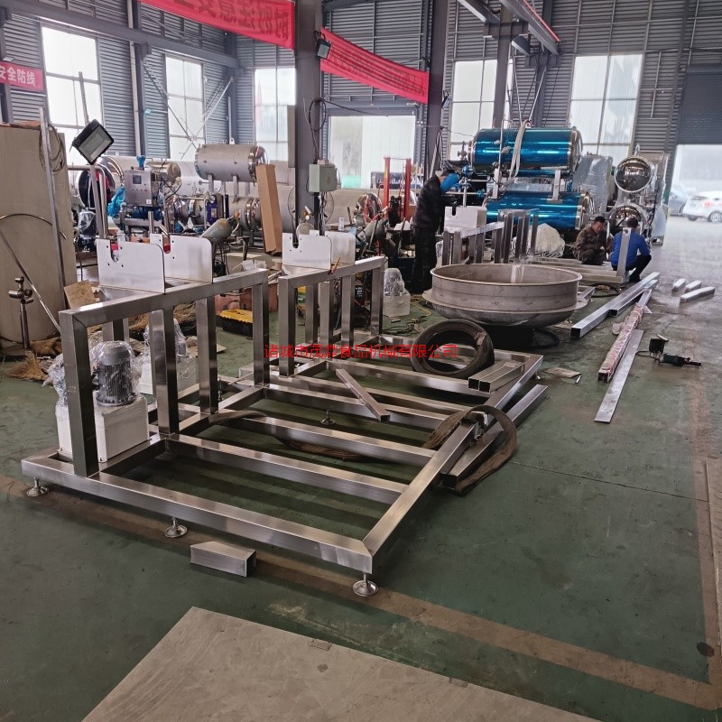 行星攪拌炒鍋主要由鍋體、架體、攪拌系統(tǒng)、加熱系統(tǒng)、調(diào)速傳動裝置、攪拌軸、鍋體翻轉(zhuǎn)系統(tǒng)等組成。行星炒鍋加熱方式可分為電加熱、燃氣加熱、蒸汽加熱、電磁加熱等方式。行星炒鍋適用于:火鍋底料、月餅餡料、高粘度物料、果醬、年糕、辣椒醬、食堂、阿膠、熬湯、豆蓉、豆沙、芝麻醬、五谷豆?jié){、方便面醬料、香菇醬等食品加工攪拌炒制。行星炒鍋采用不銹鋼制作,攪拌徹底、無死角、攪拌均均、不易糊鍋。攪拌器和刮板結(jié)構(gòu)設(shè)計獨特,物料攪拌混合更均勻,刮底更徹底,不容易產(chǎn)生糊鍋現(xiàn)象。