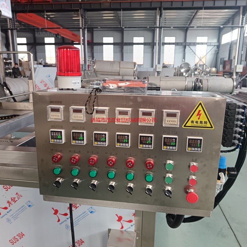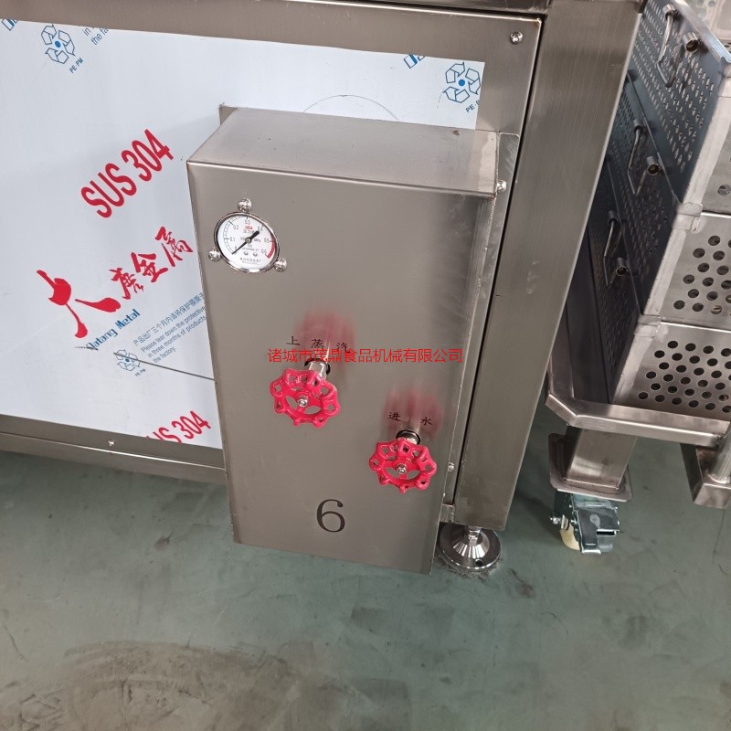 蜂窩煮鍋是結合廣大客戶的需求,利用現代電子控制技術開發的一款大型節能煮鍋。該設備具有自動溫度測量、溫度自由設定、工作時間控制、電腦面板操作、數字功能顯示、加熱功率可調節等功能。設備采用不銹鋼材料制造而成,容積大,利用盤管循環蒸汽加熱,使鍋內溫度均勻,蒸煮出料時,鍋內湯汁不需要排出,蒸汽與湯汁不接觸,不會污染湯汁,湯汁可以連續循環使用。該設備帶有不銹鋼材料制造的鹵煮筐,產品放在鹵煮筐內蒸煮,干凈衛生,方便操作,可單個筐提起。鹵煮完畢后,提升控水,操作方便,大大節省勞動力。鍋外壁帶有保溫層,防止熱量的散發,起到保溫、節約能源的作用