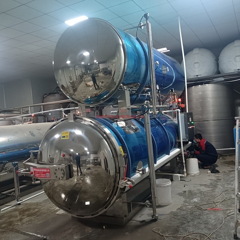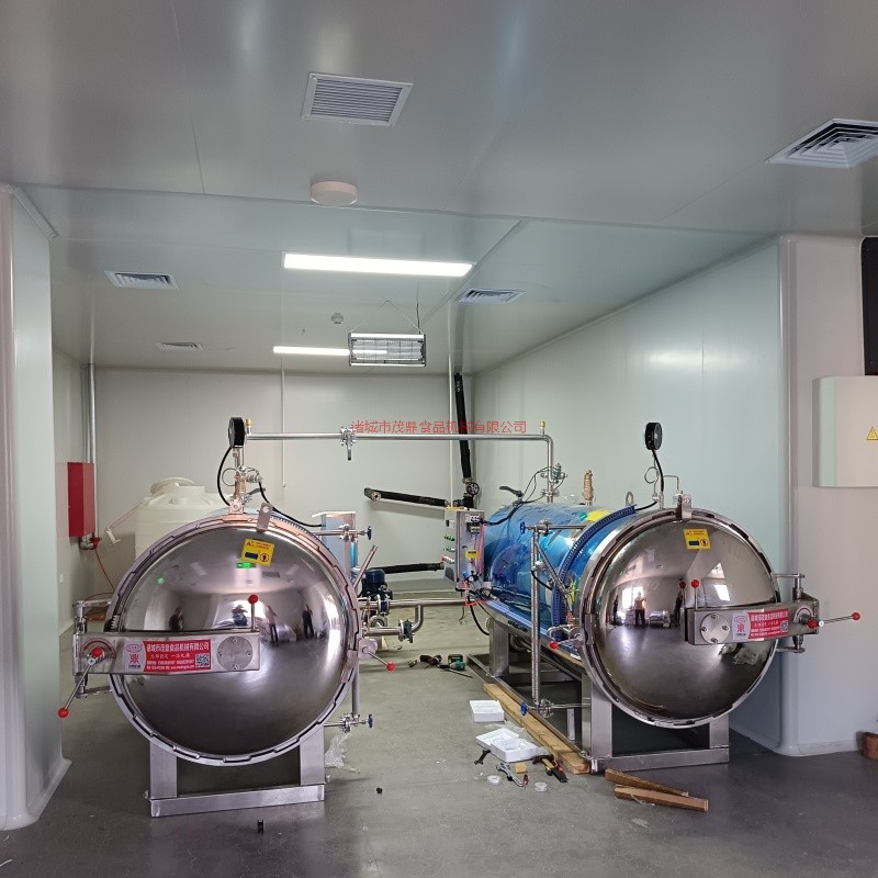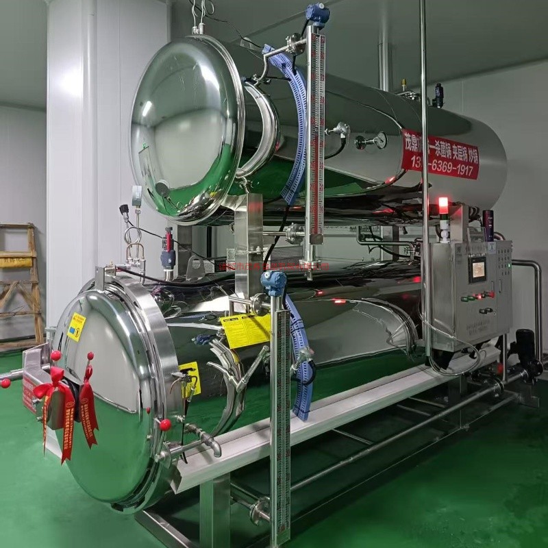 殺菌鍋以有一定的壓力的蒸氣為熱源,具有受熱面積大,熱效率高、加熱均勻、液料沸騰時間短、加熱溫度容易控制等特點。本鍋內(nèi)層鍋體(內(nèi)鍋)采用耐酸耐熱的奧氏型不銹鋼制造,配有壓力表和閥門,外型美觀、安裝容易、操作方便、穩(wěn)定可靠。殺菌鍋的作用是使食品等在密閉的環(huán)境下,接受升溫、保溫、降溫三個過程,對食品進行高溫短時間殺菌或滅菌,既殺滅食品中可能的致病菌,又保持食品的重要營養(yǎng)成份及食品的色香味不受損害。并配有壓縮空氣管系,以壓縮空氣的反壓力作用,確保產(chǎn)品在滅菌后的包裝使用要求,為延長食品的保存期。