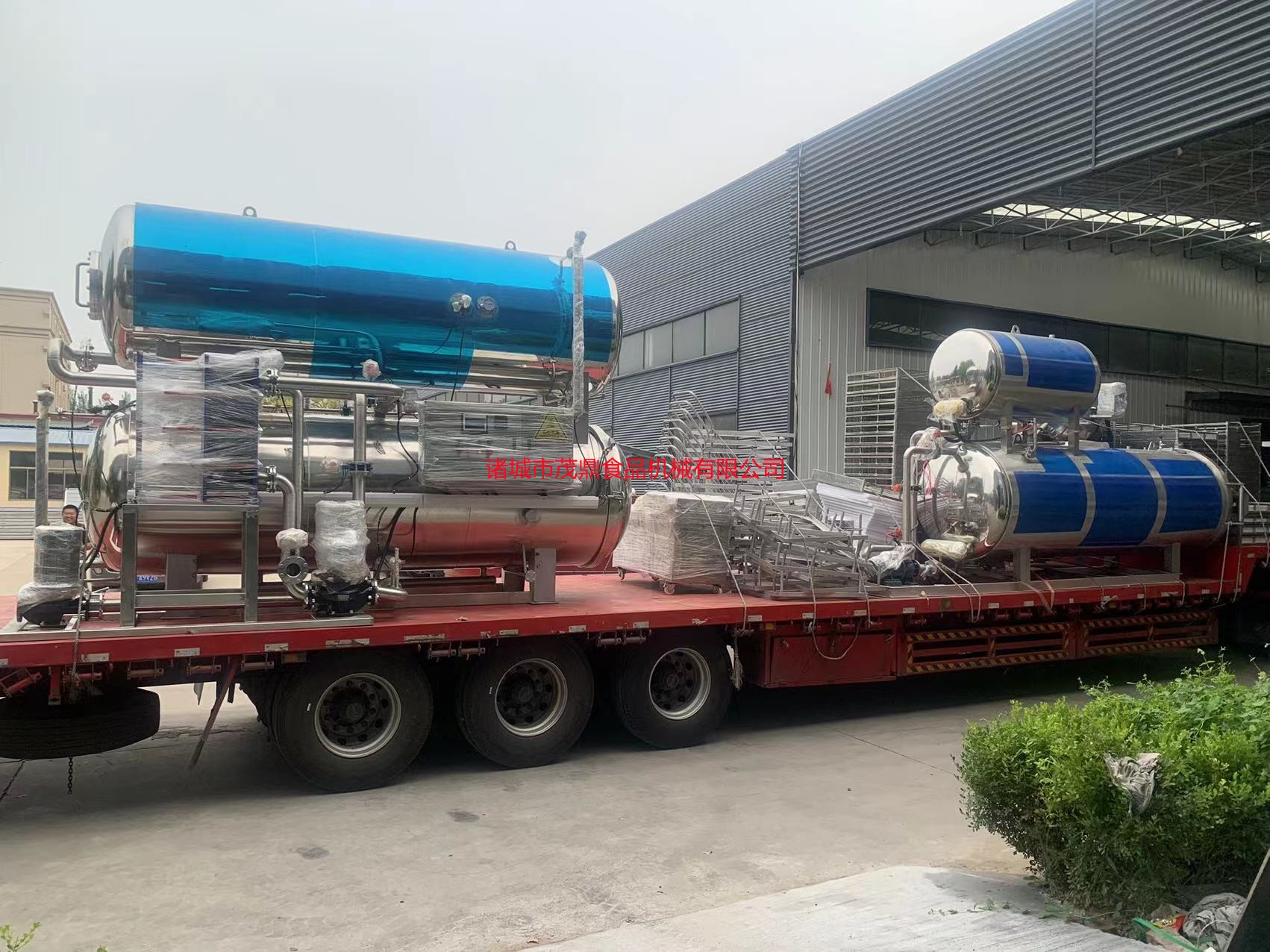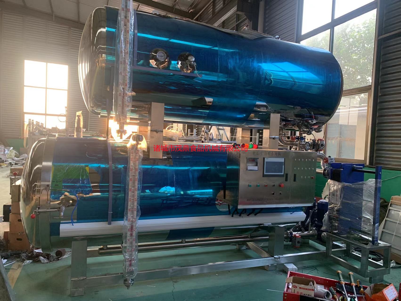 全自動雙層殺菌鍋用的是架體+支撐,起到穩定作用,上下鍋體是一樣大的,這樣在產品殺菌的時候水量充足,殺菌徹底,水在上罐中只能達到80%的容積,水沸騰后流到下鍋,能夠全部的覆蓋饞產品。而且上鍋也是帶壓力的,帶保溫層,保溫效果好.有的廠家:上罐比下罐小,產生的額水量不足以覆蓋產品,不能完全殺菌。