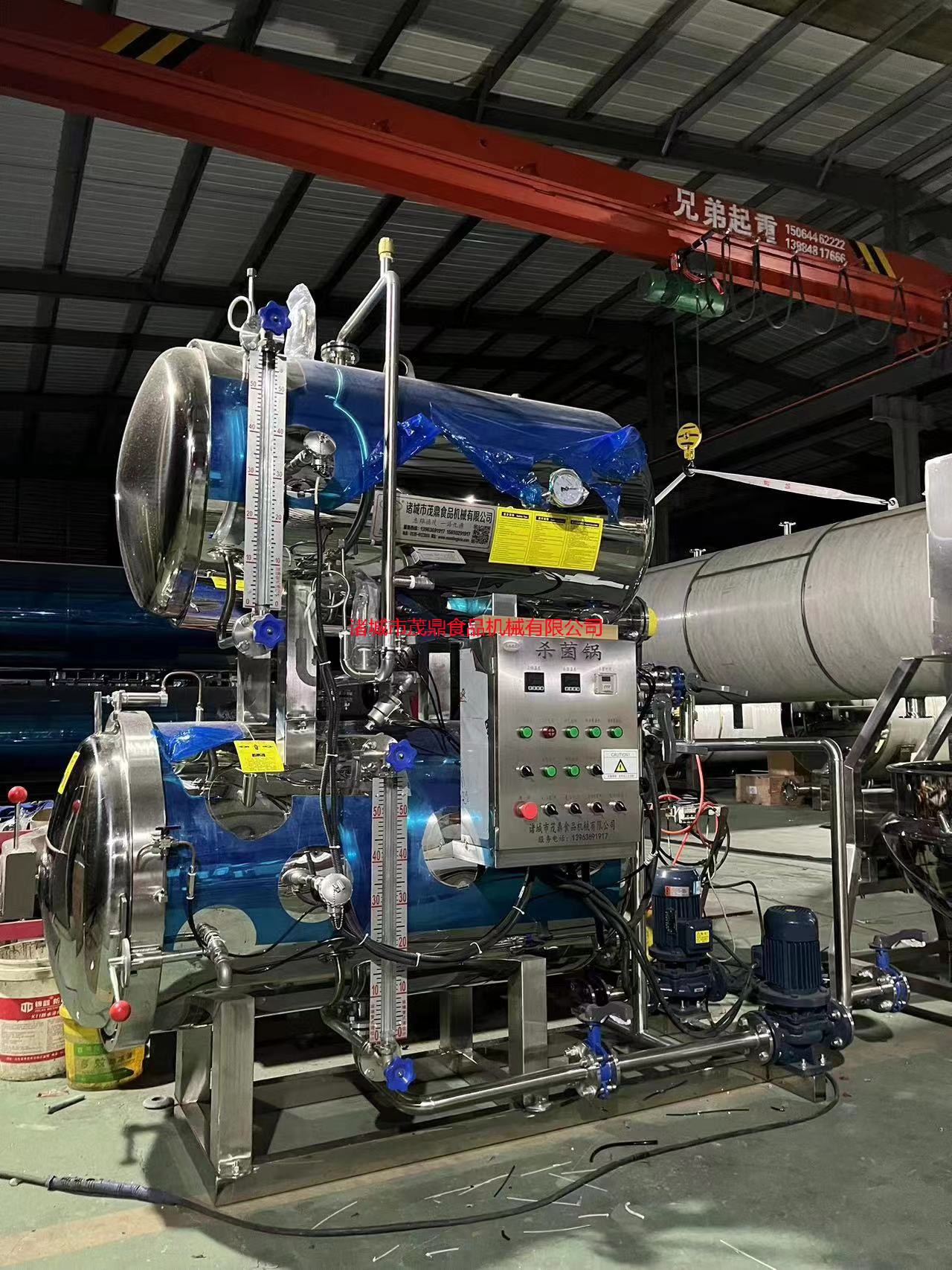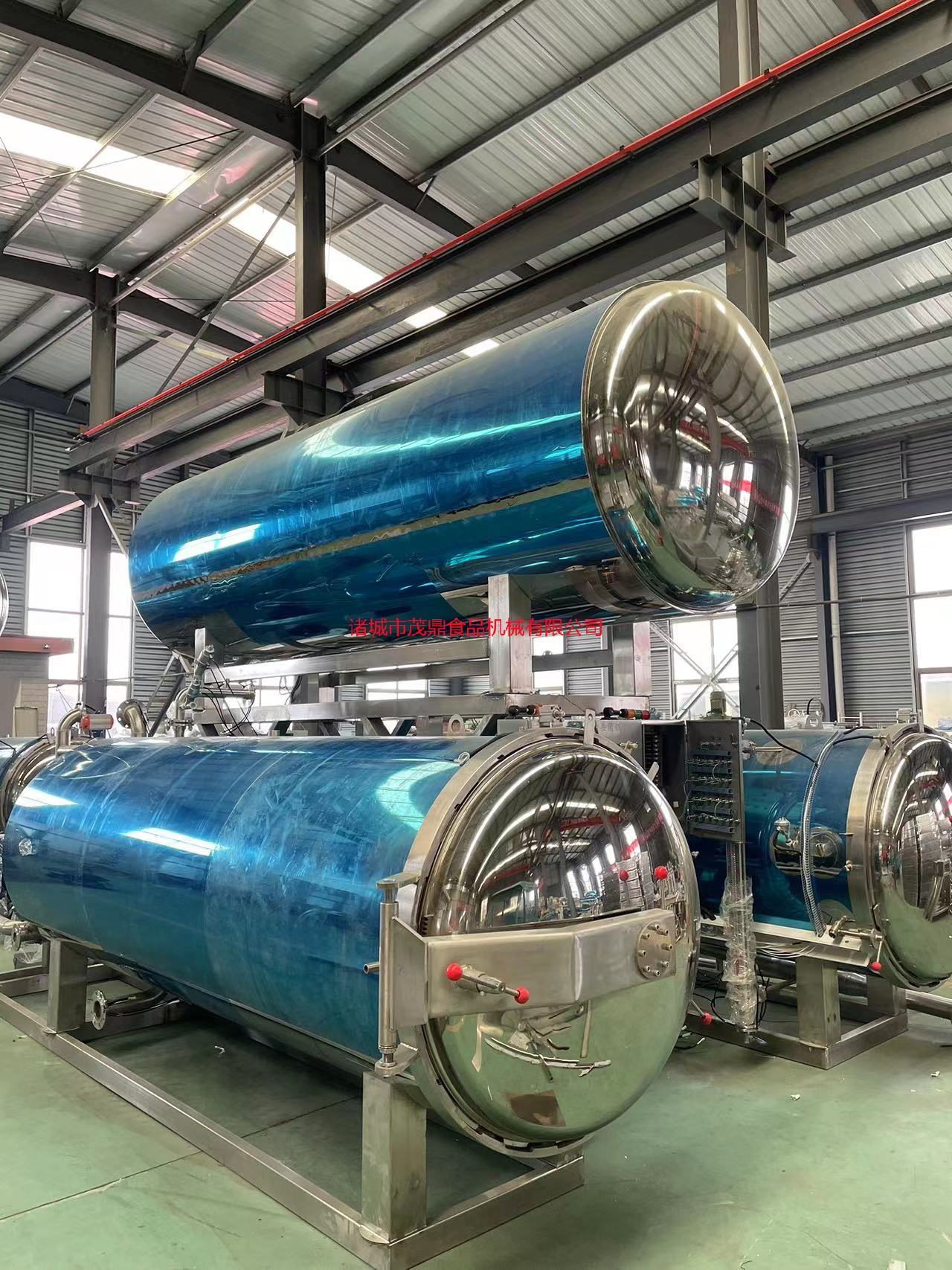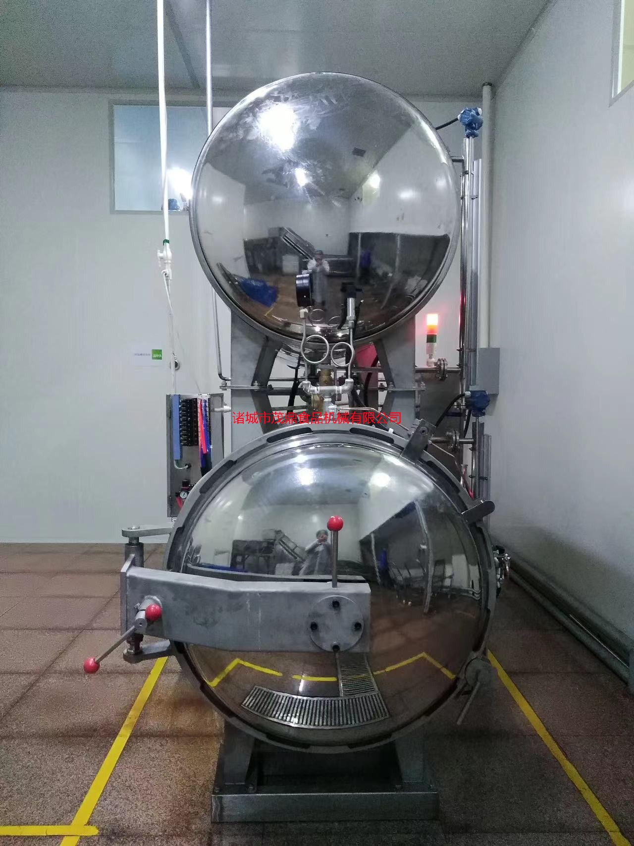 殺菌鍋由鍋體、鍋蓋、開啟裝置、鎖緊楔塊、安全聯鎖裝置、軌道、滅菌框、蒸汽噴灌及若干管口等組成。鍋蓋密封采用充氣式硅橡膠耐溫密封卷,密封可靠,使用壽命長。具有受熱面積大,熱效率高、加熱均勻、液料沸騰時間短、加熱溫度容易控制等特點。雙層殺菌鍋比單層殺菌鍋效率提高一倍,節約能源和殺菌時間,適用于一天多次殺菌的食品廠家。在殺菌過程中,應注意最初排氣,進而泄氣,使蒸汽流通。亦可每各10 分鐘放氣一次,促進熱交換。總之必須滿足殺菌條件的規定,按一定程序進行,殺菌溫度的高低,殺菌壓力的大小,殺菌時間的長短和操作方法等均由不同產品的殺菌工藝作出具體規定。