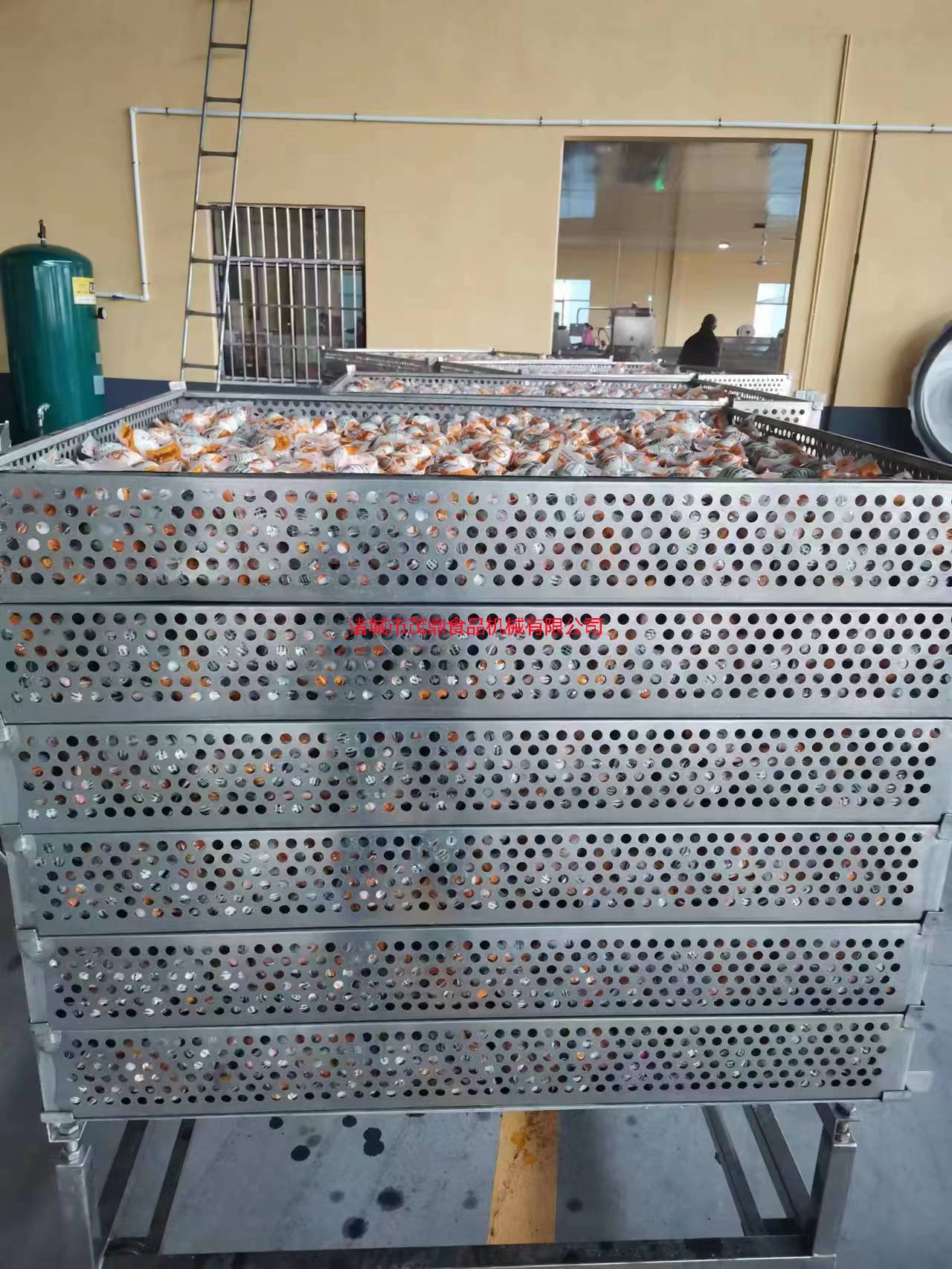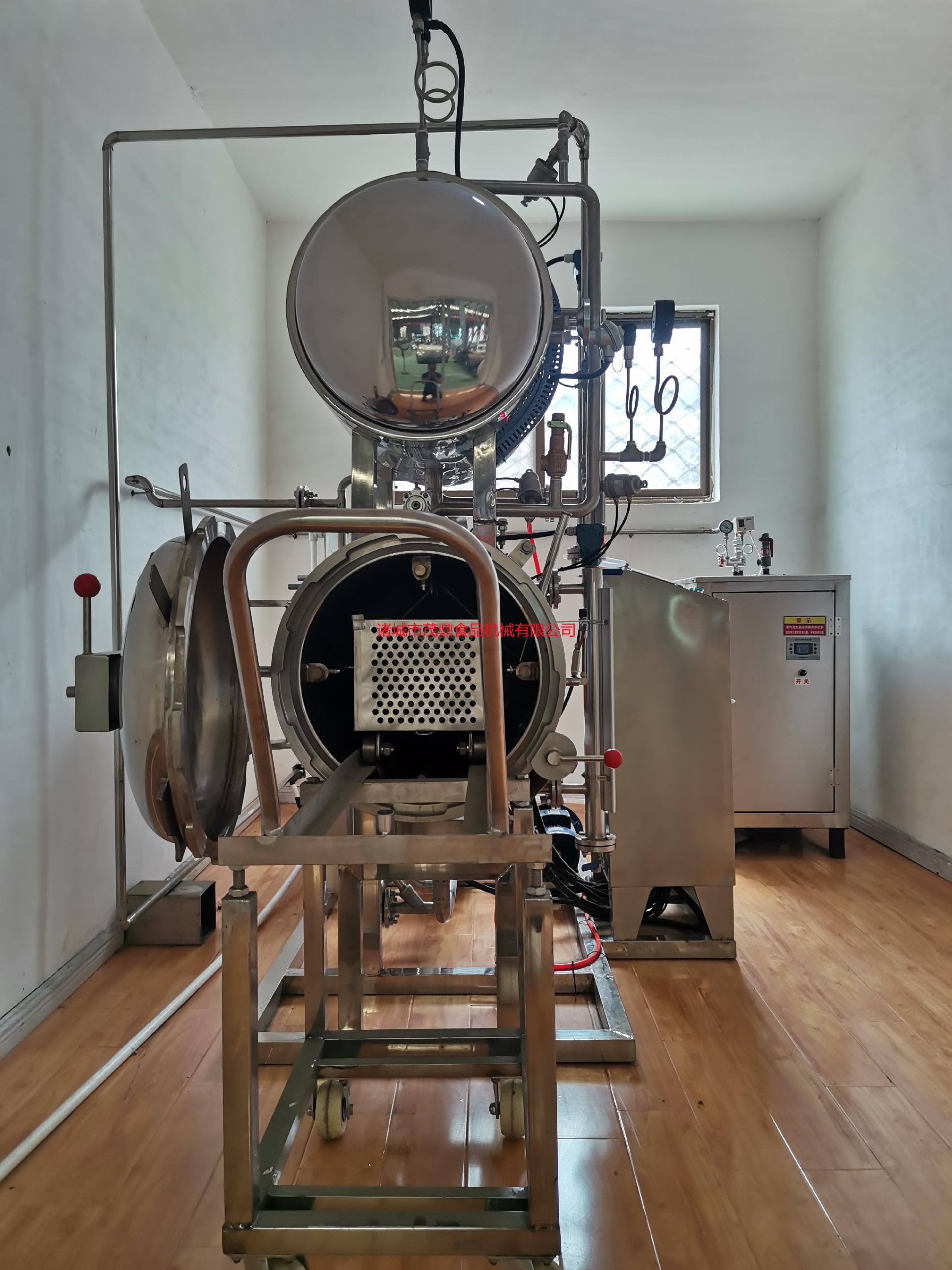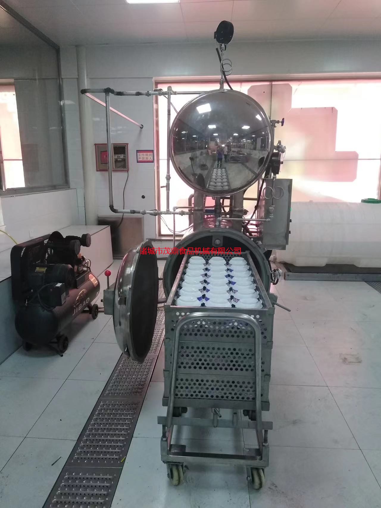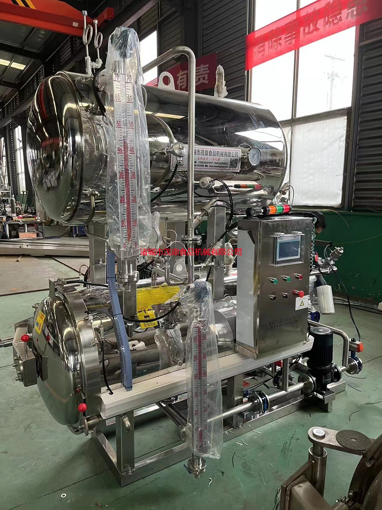 殺菌鍋由鍋體、鍋蓋、開啟裝置、鎖緊楔塊、安全聯鎖裝置、軌道、滅菌框、蒸汽噴灌及若干管口等組成。鍋蓋密封采用充氣式硅橡膠耐溫密封卷,密封可靠,使用壽命長。具有受熱面積大,熱效率高、加熱均勻、液料沸騰時間短、加熱溫度容易控制等特點。雙層殺菌鍋比單層殺菌鍋效率提高一倍,節約能源和殺菌時間,適用于一天多次殺菌的食品廠家。在殺菌過程中,應注意最初排氣,進而泄氣,使蒸汽流通。亦可每各10 分鐘放氣一次,促進熱交換。總之必須滿足殺菌條件的規定,按一定程序進行,殺菌溫度的高低,殺菌壓力的大小,殺菌時間的長短和操作方法等均由不同產品的殺菌工藝作出具體規定。