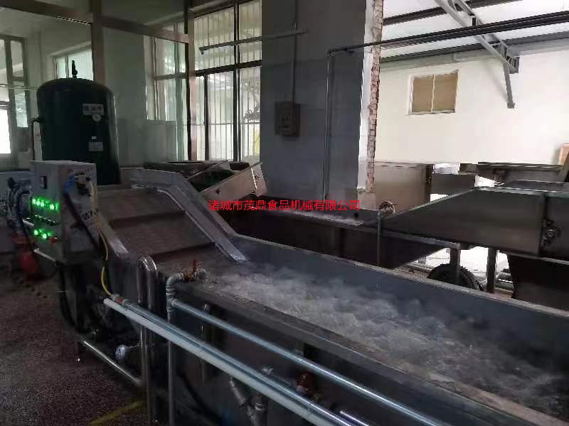 氣泡的作用下,被充分打散、翻滾、清洗、傳送。蔬菜表面的泥沙。會脫落,沉淀到底部隔離倉,防止了翻揚回流造成再度污染。而從蔬菜上洗落下來的雜物和小蟲會漂浮在水面,然后被網孔收集,溢出水槽的水流被除水箱。使用果蔬清洗機洗干凈后,再經過噴淋的清洗,然后通過傳送帶送出,傳送帶末端有一個吹起裝置,沒有被清理掉的雜物吹落。果蔬清洗機采用不同的清洗工藝和清洗模式可能會使耗水量有所改變,選擇合適的果蔬清洗機原理也很重要的因素之一。