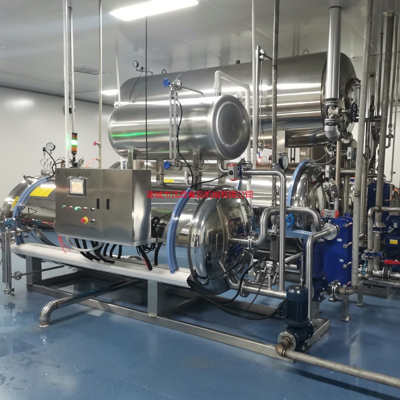 1.高溫短時間滅菌,采用雙罐熱水循環進行殺菌,事先將熱水罐內的水加熱到滅菌所要求的溫度,從而縮短了滅菌時間,提高工作效率。