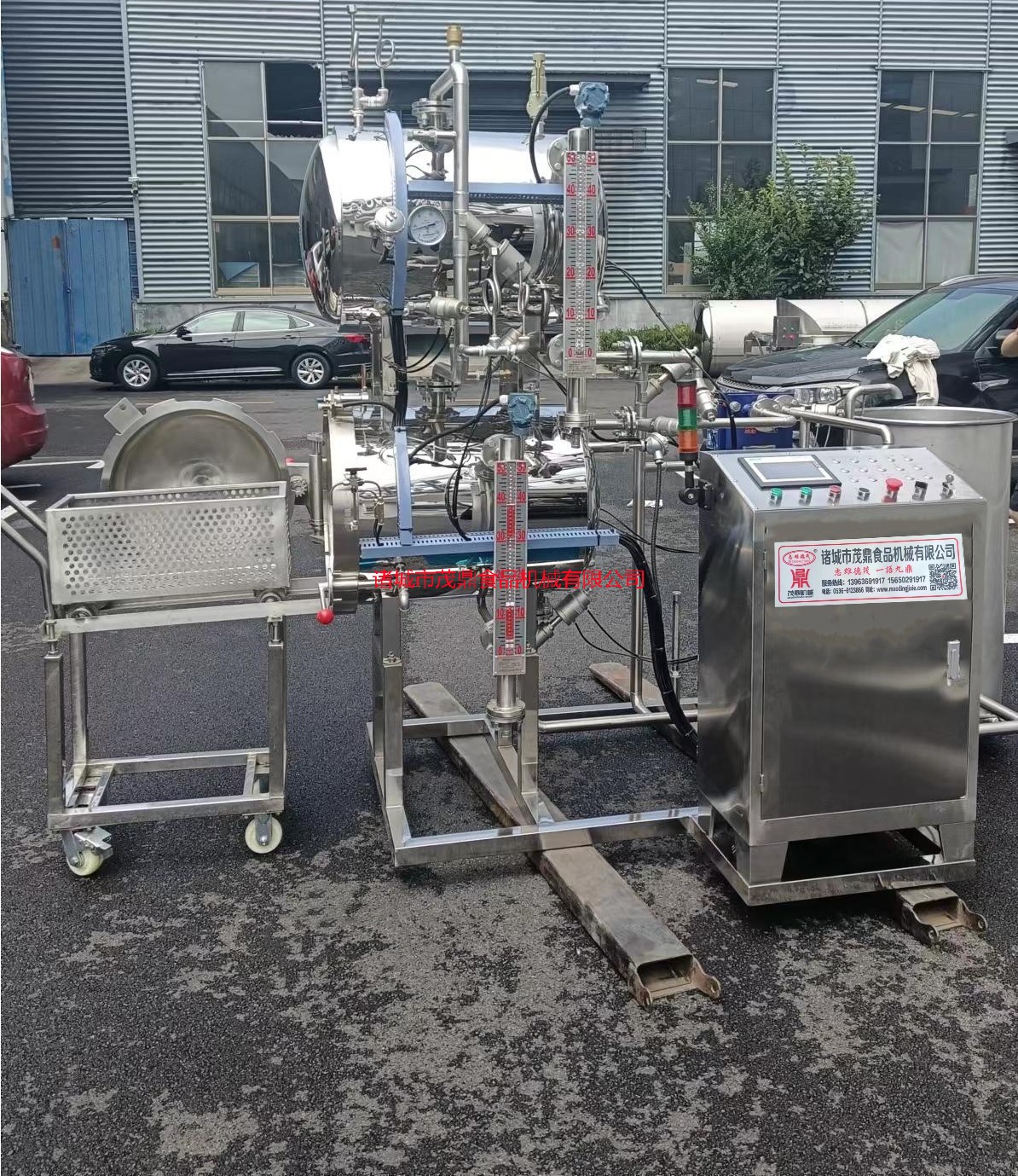 殺菌鍋由鍋體、鍋蓋、開啟裝置、鎖緊楔塊、安全聯鎖裝置、軌道、滅菌筐、蒸汽噴管及若干管口等組成。鍋蓋密封采用充氣式硅橡膠耐溫密封圈,密封可靠,使用壽命長。從殺菌方式上分為:熱水循環式殺菌、蒸汽式殺菌、淋水式殺菌。從加熱形式上分為:蒸汽加熱、電加熱、電汽兩用型。從結構上可分為:三鍋串聯式、雙鍋并聯式、單鍋、雙層水浴式、自動回轉式、旋轉式。