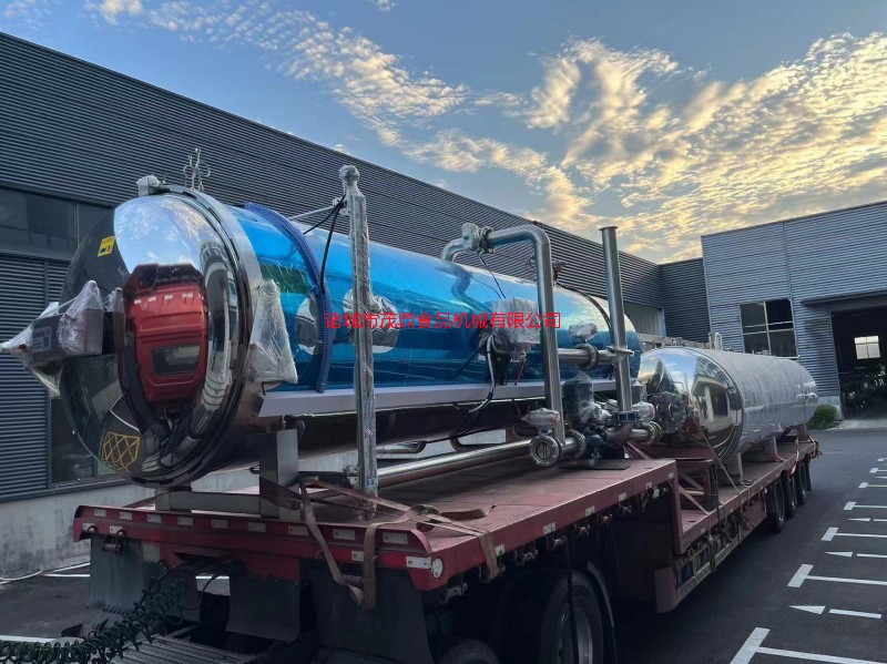 殺菌鍋由鍋體、鍋蓋、開啟裝置、鎖緊楔塊、安全聯鎖裝置、軌道、滅菌筐、蒸汽噴管及若干管口等組成。鍋蓋密封采用充氣式硅橡膠耐溫密封圈,密封可靠,使用壽命長。從殺菌方式上分為:熱水循環式殺菌、蒸汽式殺菌、淋水式殺菌。從加熱形式上分為:蒸汽加熱、電加熱、電汽兩用型。從結構上可分為:三鍋串聯式、雙鍋并聯式、單鍋、雙層水浴式、自動回轉式、旋轉式。