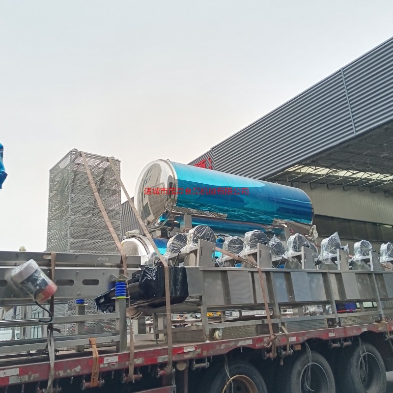 客戶定制的滿滿一大車竹筍深加工設備發貨了,有竹筍全自動多功能雙層噴淋加水浴殺菌鍋一套,竹筍預煮機一條,竹筍氣泡清洗機一臺,竹筍輸送線一條,竹筍提升機一條,振動篩一臺,竹筍翻轉吹干線一條,這臺17.5米大板車正好裝滿,感謝王總的支持與信任,祝您機器一響黃金萬兩。