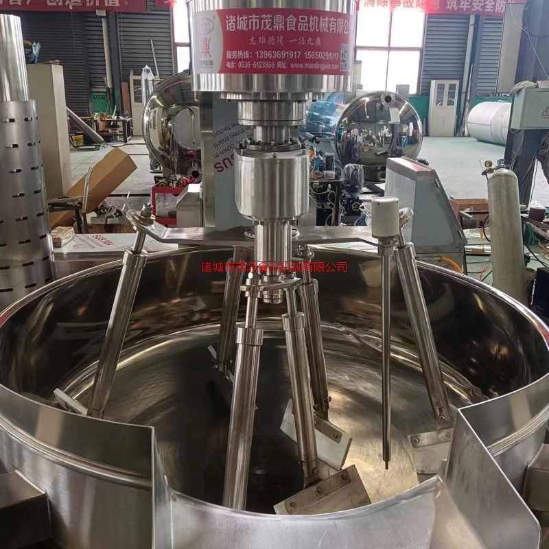 本產品鍋體為一次沖壓成型的半球不銹鋼鍋體,采用電磁加熱形式,攪拌形式采用特殊的傾斜傳動,使用的行星攪拌器與鍋體充分接觸,實現傳動公轉與密封結構,是傳動部分與鍋內潔凈、衛生。采用變頻調速動力,運行更平穩。電磁加熱形式打破了明火烹調方式,具有升溫快、無明火、無煙塵、無有害氣體,對周圍環境不產生熱輻射。安全性好和外觀美觀等特點,是性能優良的食品加工設備。